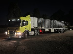 ๐ธ Photo: The transport truck departing the Western Pigeon Federation logistics centre at 10:50 PM Wednesday night, securely loaded for the 930-kilometre journey to Blinman.